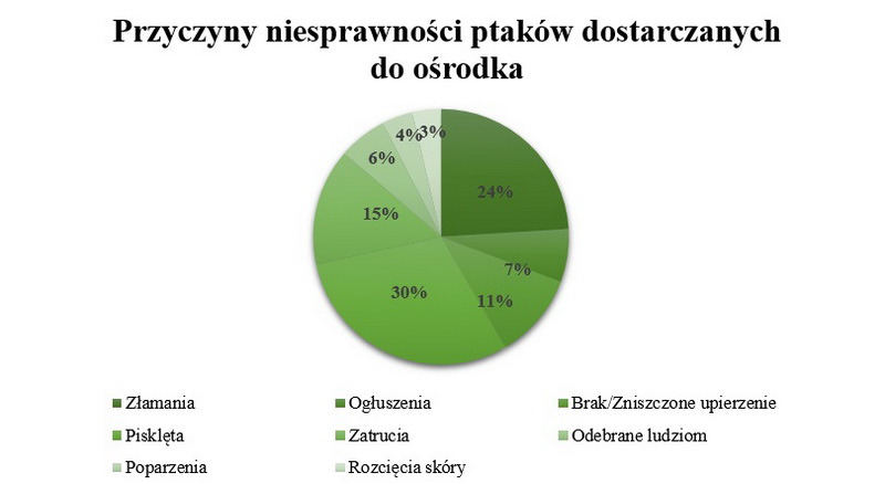 W Stacji znajdują się np. orły przednie czy bieliki utrzymywane przez 20 – 40 lat! Główną przyczyną niesprawności dzikich zwierząt są kontuzje i urazy, okresowe osłabienia młodych osobników, rzadziej choroby czy zatrucia. Najczęściej trafiają tu zwierzęta gatunków pospolitszych jak myszołowy, pustułki, bociany czy jeże. Zdarzają się jednak i bardzo rzadkie, jak orły przednie, rybołowy czy nawet sępy. Wszystkie dostarczane tu zwierzęta znajdują fachową pomoc oraz opiekę, do czego czujemy się zobowiązani i robimy od wielu lat bez modnego obecnie rozgłosu medialnego.